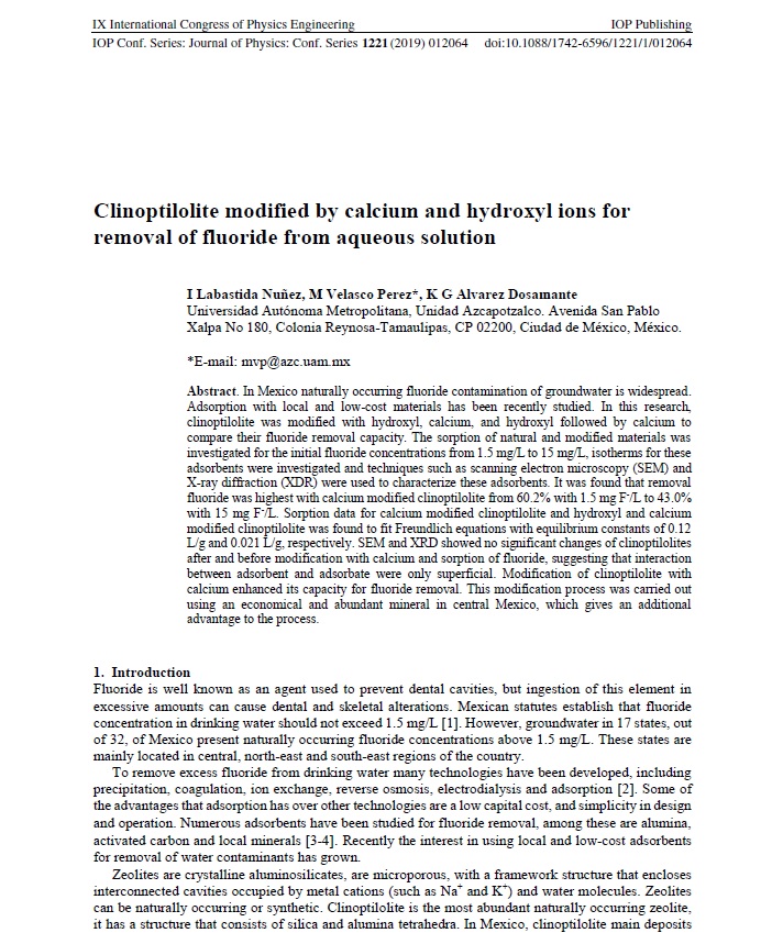 Adsorción – precipitación de fluoruros en roca caliza con y sin presencia de sulfatos