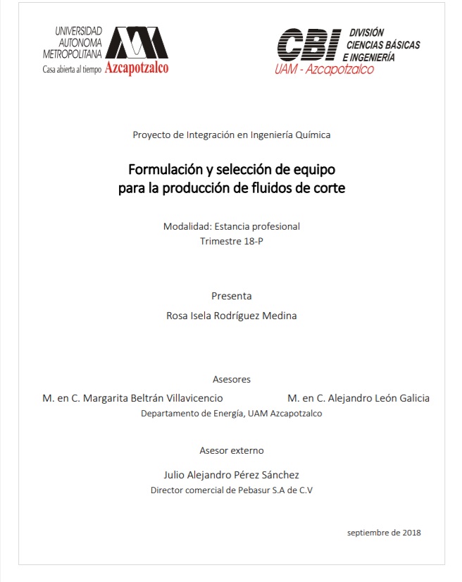 Formulación de equipo para la producción de fluidos de corte