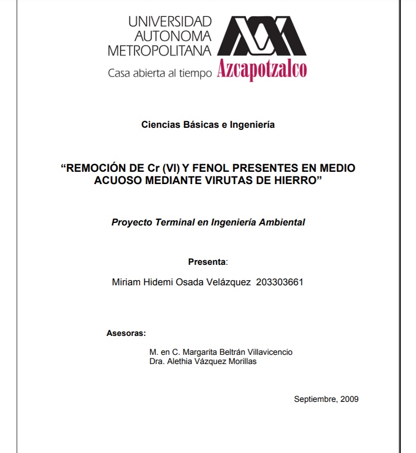 Remoción de Cr (VI) y fenol presentes en medio acuoso mediante virutas de hierro