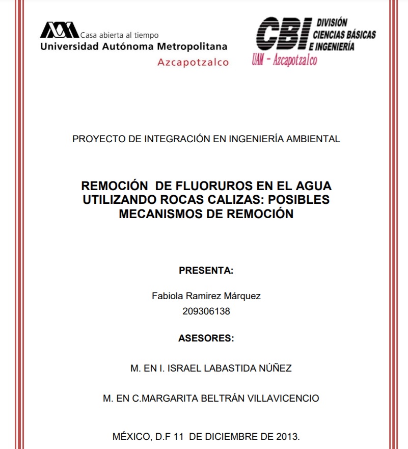 Remoción de fluoruros en el agua utilizando rocas calizas: Posibles mecanismos de remoción