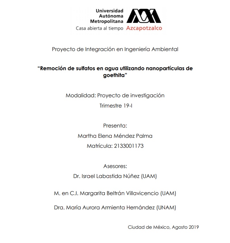 Remoción de sulfatos en agua utilizando nanopartículas de goethita