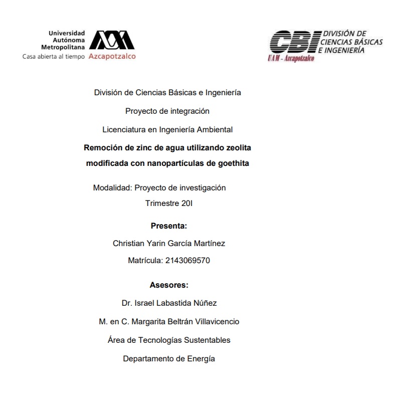 Remoción de zinc de agua utilizando zeolita modificada con nanopartículas de goethita