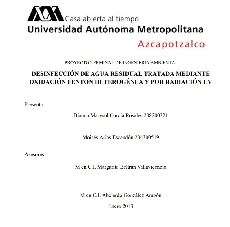 Desinfección de agua residual tratada mediante oxidación Fenton heterogénea y por radiación UV