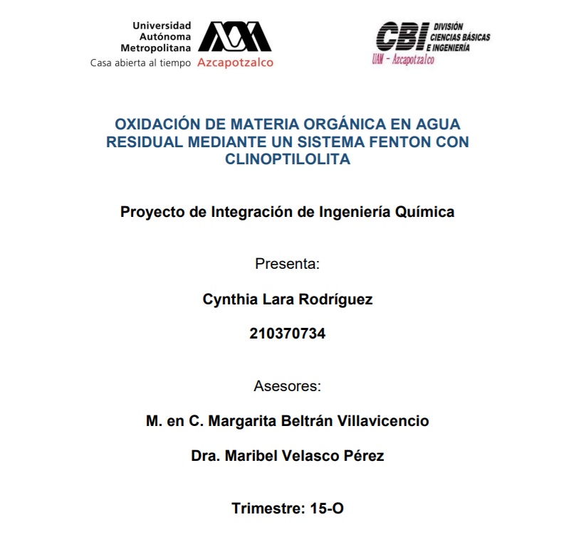 Oxidación de materia orgánica en agua residual mediante un sistema Fenton con clinoptilolita