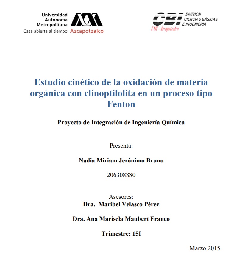 Estudio cinético de materia orgánica con clinoptilolita en un proceso tipo Fenton