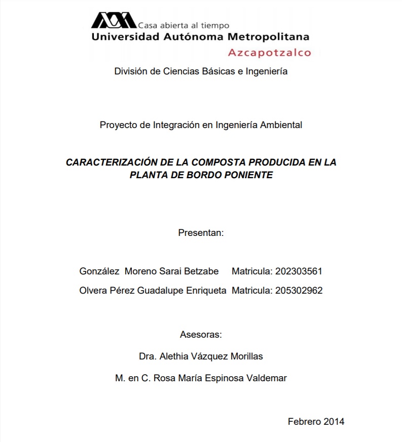 Caracterización de la composta producida en la planta de Bordo Poniente