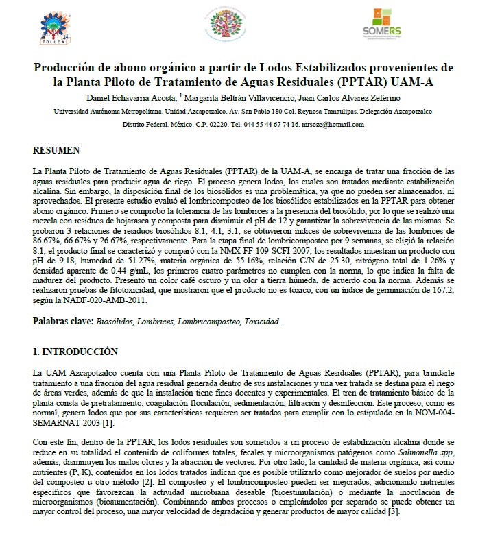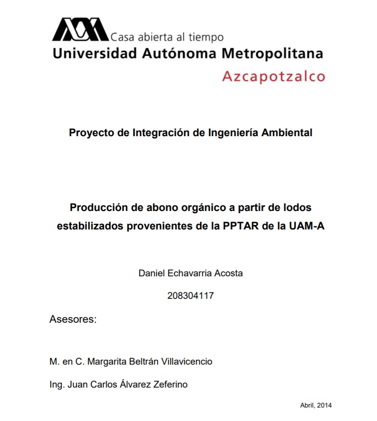 Producción de abono orgánico a partir de lodos estabilizados provenientes de la PPTAR de la UAM-A