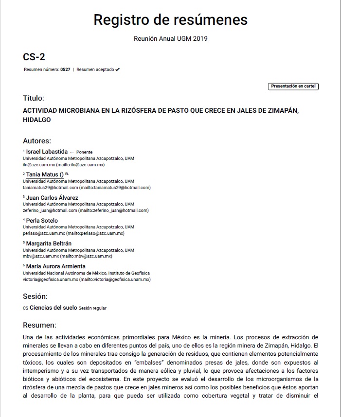 Actividad microbiana en la rizosfera de pasto que crece en jales mineros de Zimapan, Hidalgo