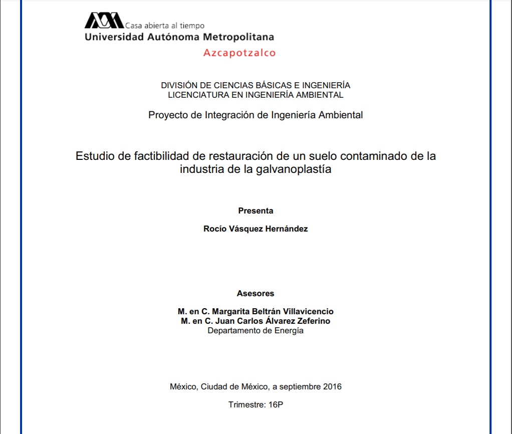 Estudio de factibilidad de restauración de un suelo contaminado de la industria de la galvanoplastia