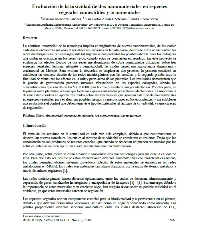 Evaluación de la toxicidad de dos nanomateriales en especies vegetales comestibles y ornamentales