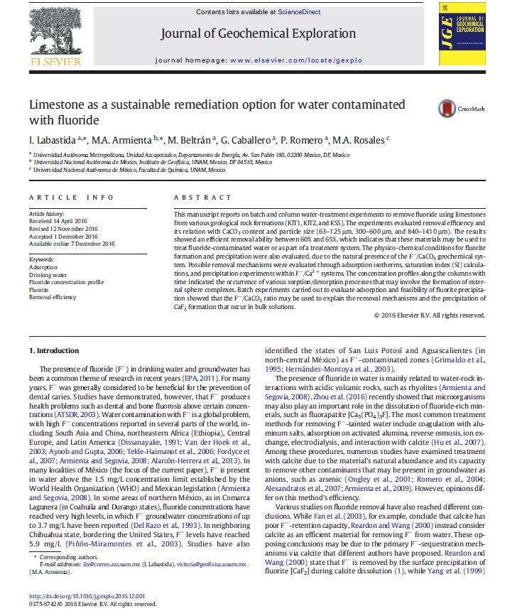 Limestone as a sustainable remediation option for water contaminated with fluoride