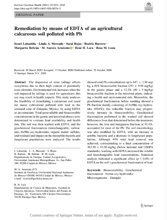 Es esta sección encontrarás proyectos y artículos científicos de profesores, alumnos y colaboradores que trabajaron dentro del Laboratorio de Tecnologías Sustentables de la UAM, unidad Azcapotzalco, en temas de suelos.
