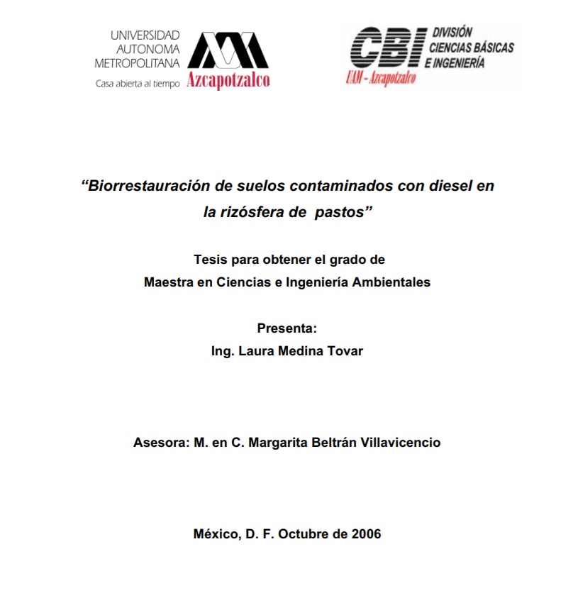 Biorrestauración de suelos contaminados con diésel en la rizósfera de pastos