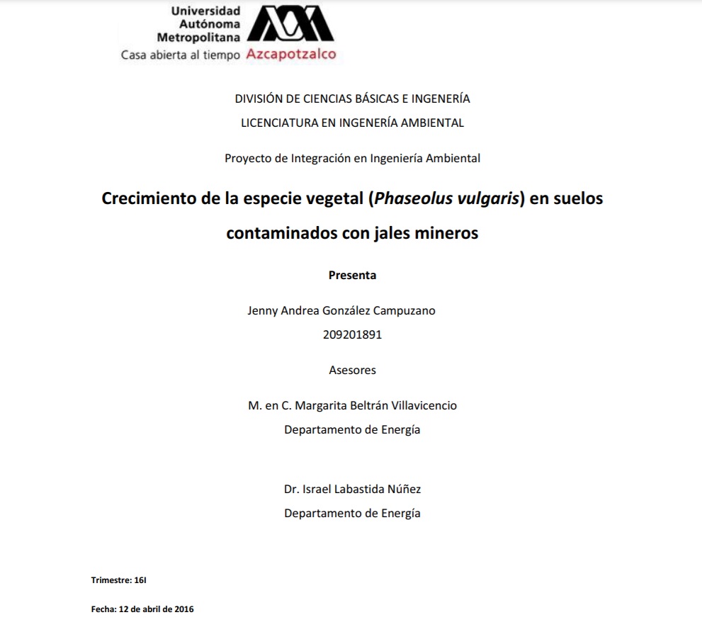 Crecimiento de la especie vegetal (Phaseolus vulgaris) en suelos contaminados con jales mineros