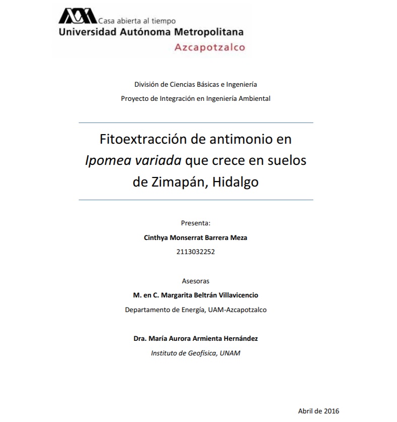 Fitoextracción de antimonio en Ipomea variada que crece en suelos de Zimapán, Hidalgo