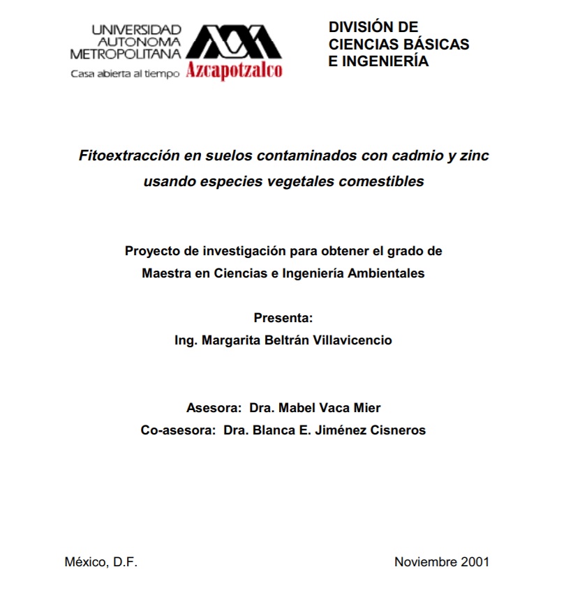 Fitoextracción en suelos contaminados con cadmio y zinc usando especies vegetales comestibles
