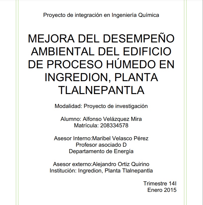 Mejora del desempeño ambiental del edificio de proceso húmedo en Ingredion, planta Tlalnepantla